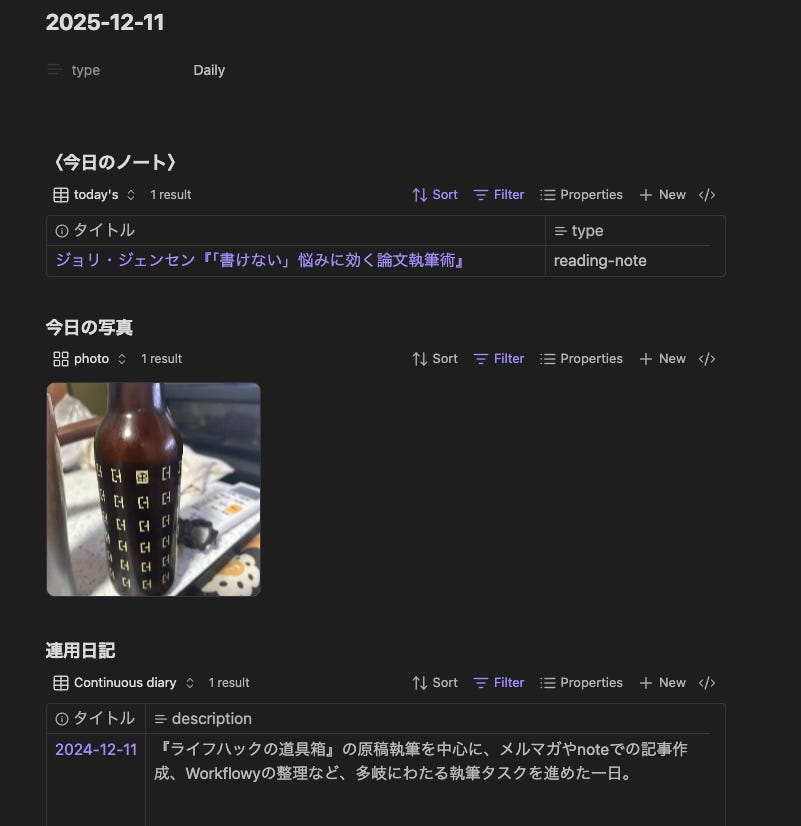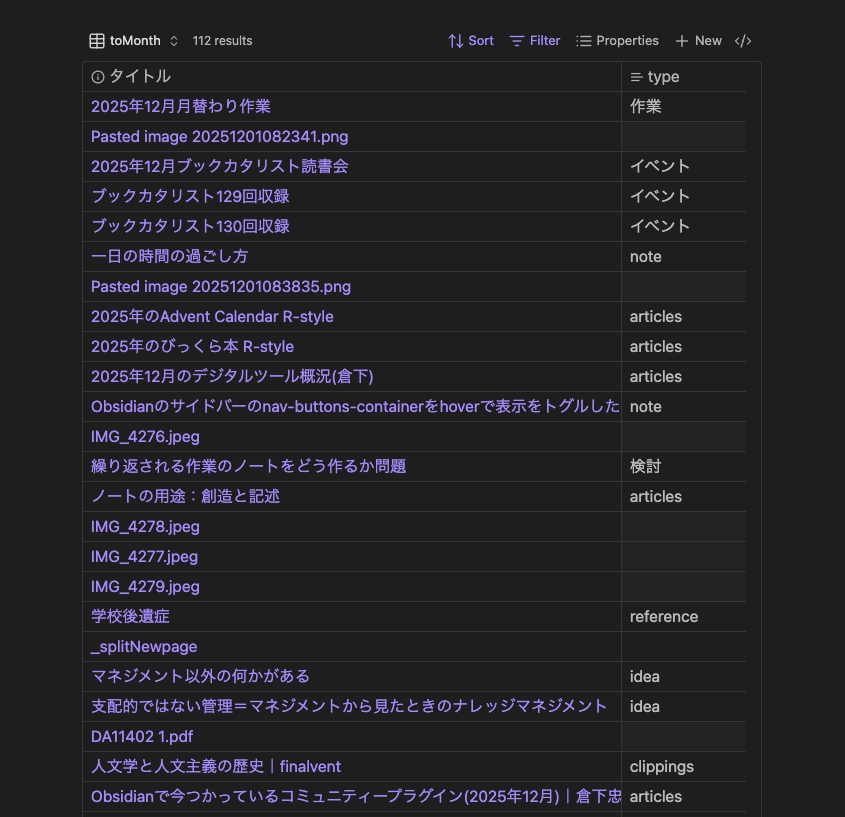 ObsidianのBases機能を使った〈今日のノート〉の運用を気に入っています。