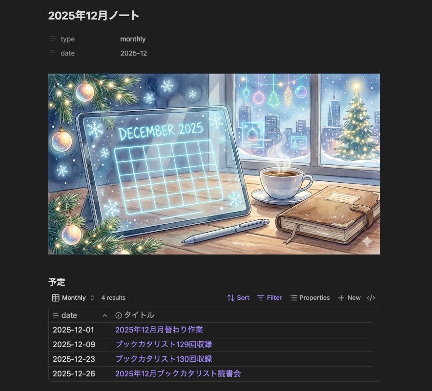 そうなってくると「日」を超えた情報にも思いを馳せたくなります。そういえば、半年前までは、毎月「月ごとノート」をObsidianに作っていたのでした。