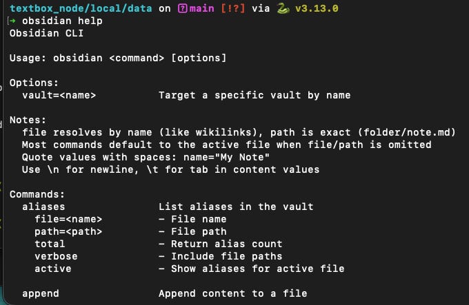 というわけで、あんまりObsidian CLIには期待していなかったのですが、いくつかよさげなポイントがありましたので、今回はそれを紹介します。