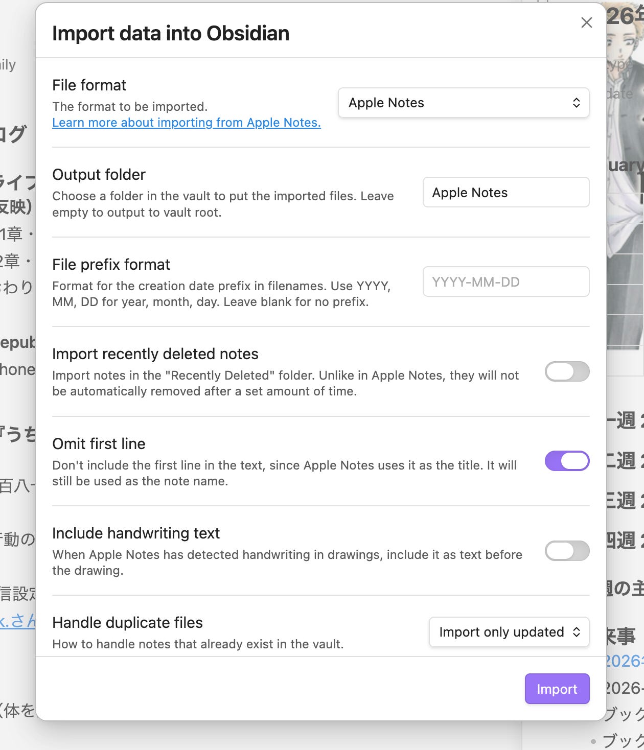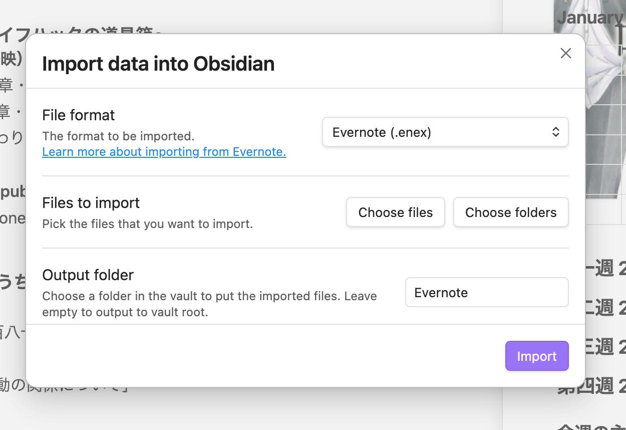 あとはこれらのファイルをObsidianにインポートする作業です。